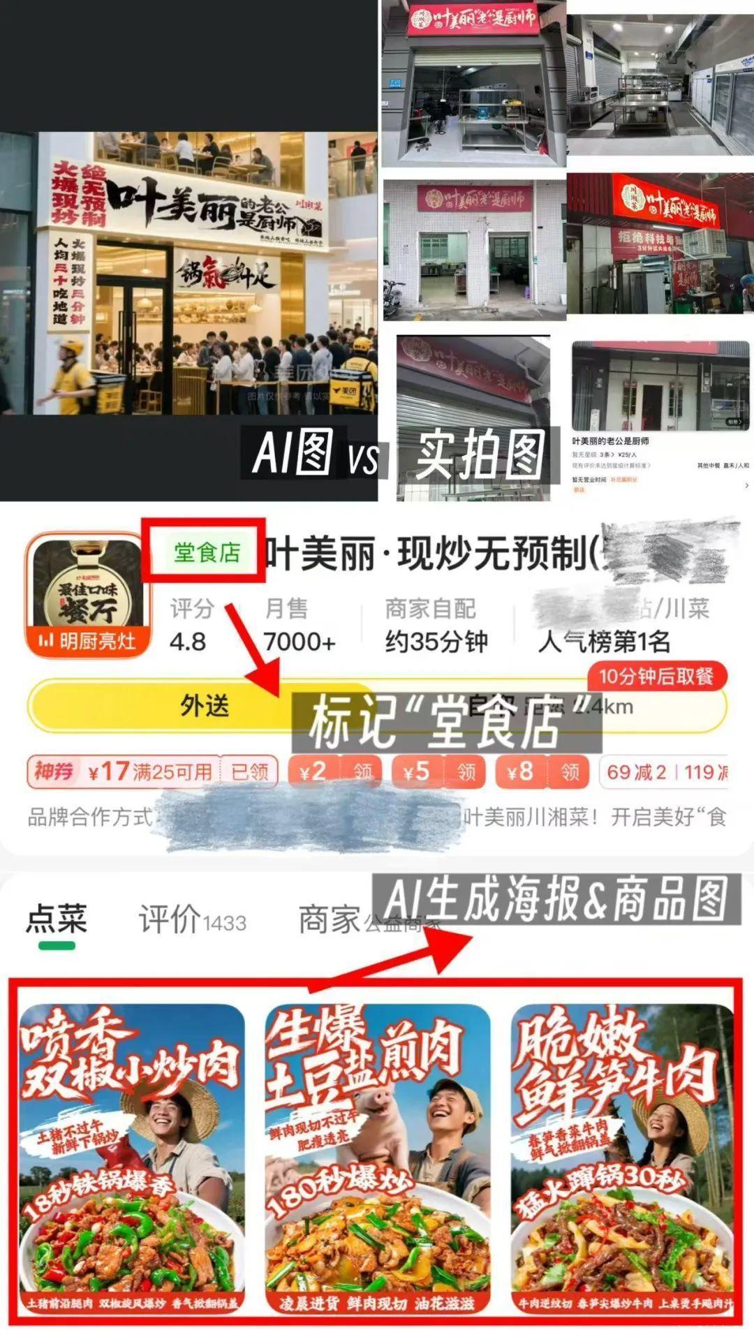 标注堂食的AI光鲜门店图与实拍环境出入很大。