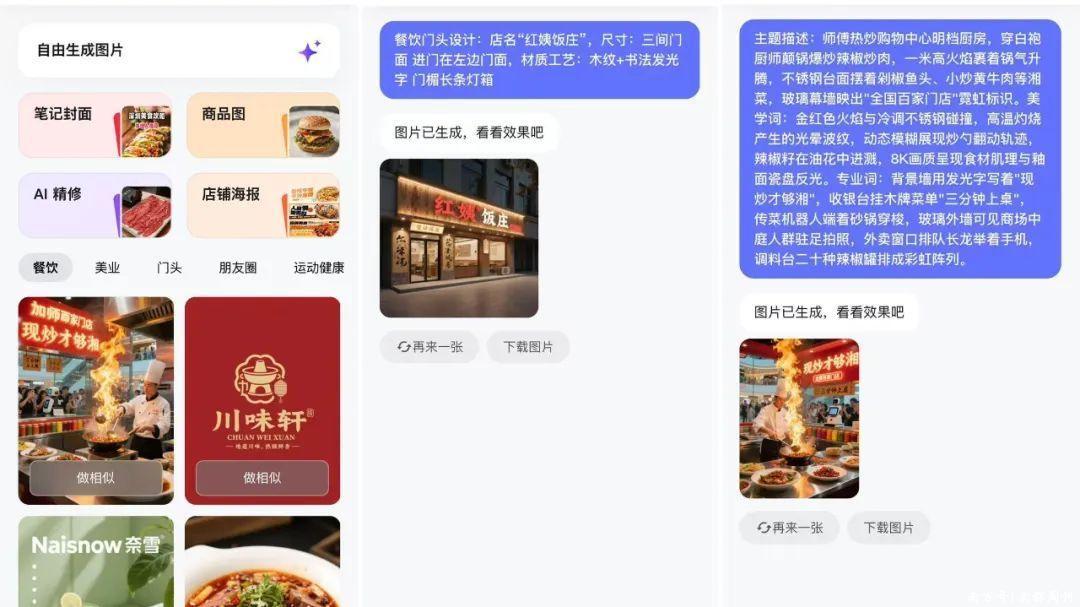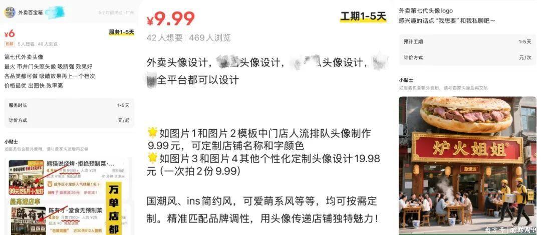 部分电商平台甚至出现专门提供AI外卖美图设计的店铺,收费几元到上百元不等。有的9.99元即可制作一张门店人流排队头像,可定制店铺名称,可以改到满意为止。有的收费几十元,以打造“有故事感的外卖头像”吸引商家购买,并承诺改到平台过审为止。实际上,都是用AI生成一些风格类似的图片。调查发现,有的卖家是个人设计师,有的卖家则是专门从事外卖运营的中介,不仅提供外卖门店整套的AI包装设计图,还可提供所谓“外卖全链工具集”。