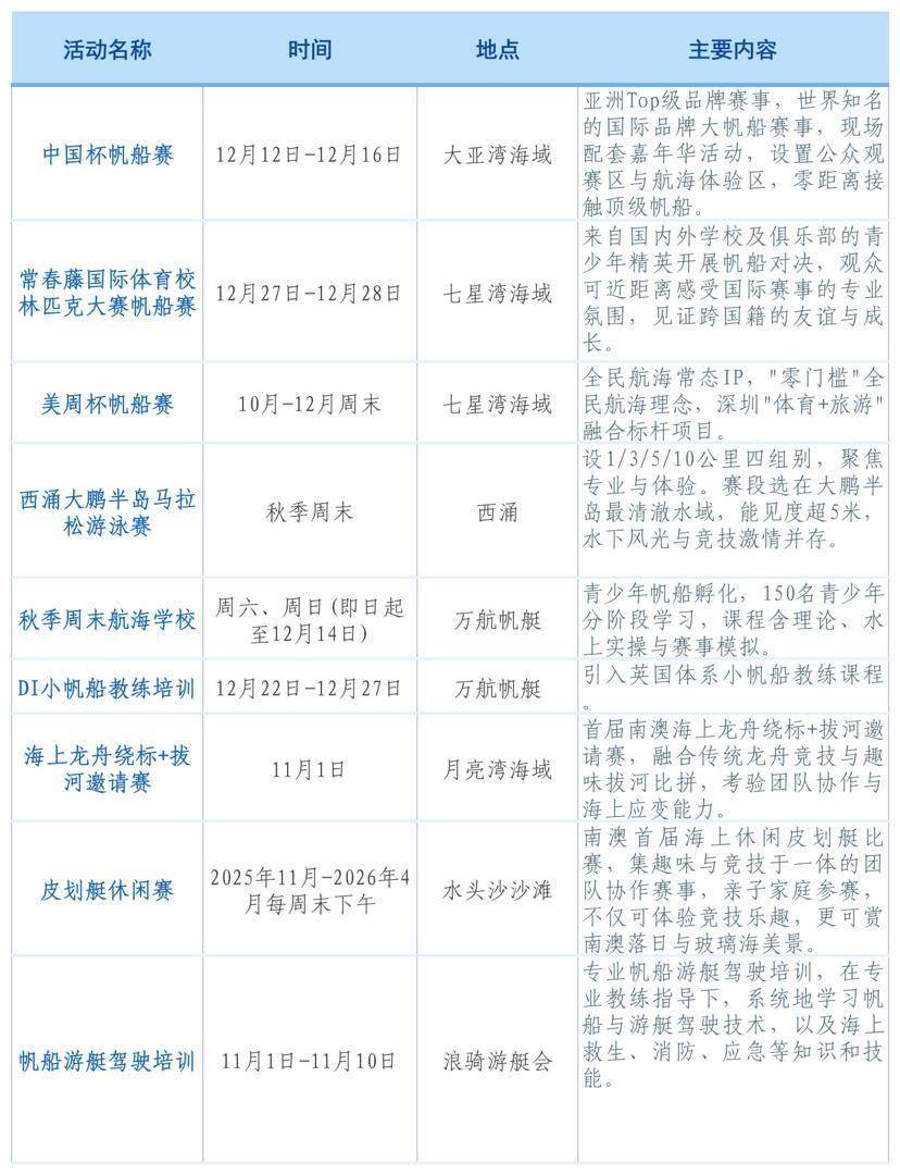南澳作为深圳海洋资源最丰富的区域,近海水质长期保持国家一类水平,手握“中国最美八大海岸线”“中国一流帆船帆板运动小镇”金字招牌,大鹏湾、大亚湾双双上榜全国美丽海湾优秀案例,25处优质天然沙滩散落其间策略赢,打卡景点比比皆是,更是“国内顶流水上运动圣地”。中国杯帆船赛是亚洲领先、世界知名的国际品牌大帆船赛事,南澳海上龙舟赛入选2025中华体育文化优秀项目,辖区帆船赛事占全国四分之一,妥妥的“运动+美景”天花板!